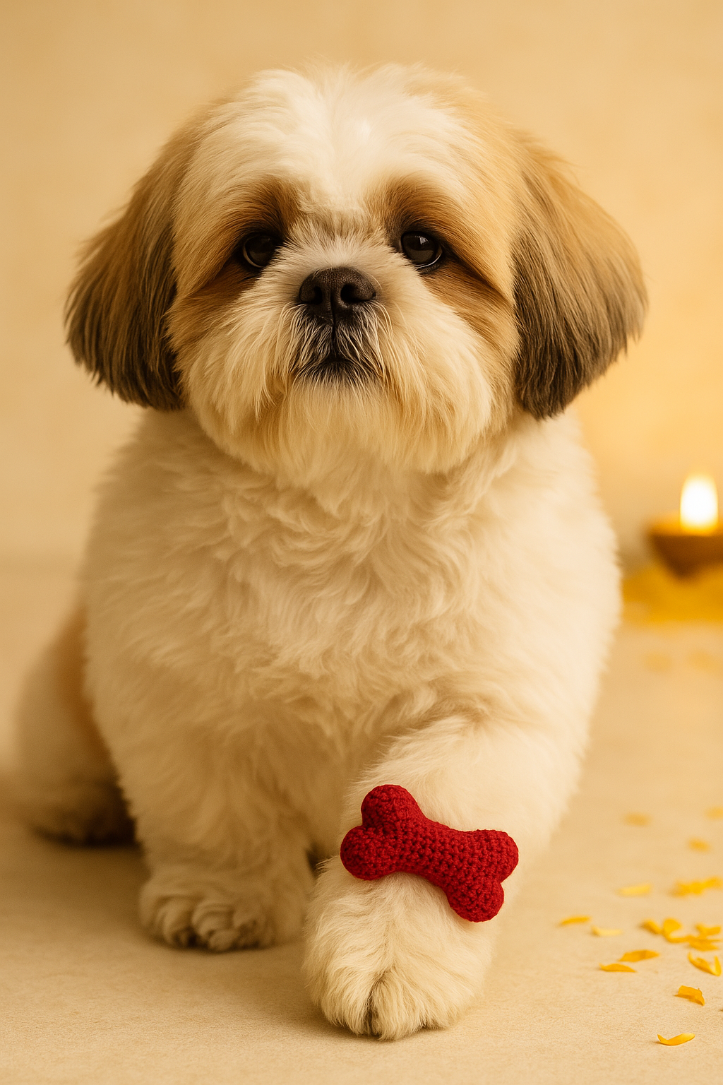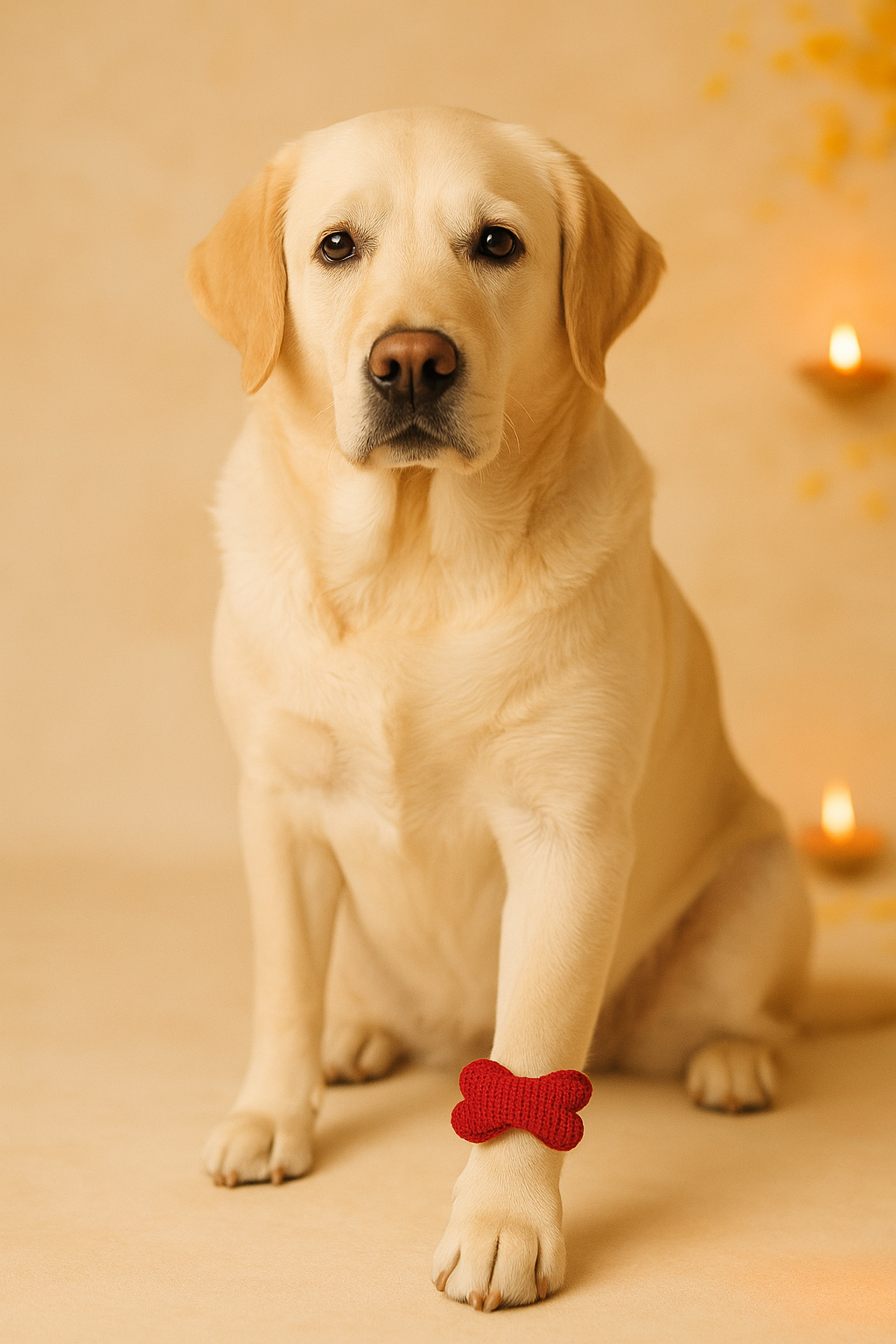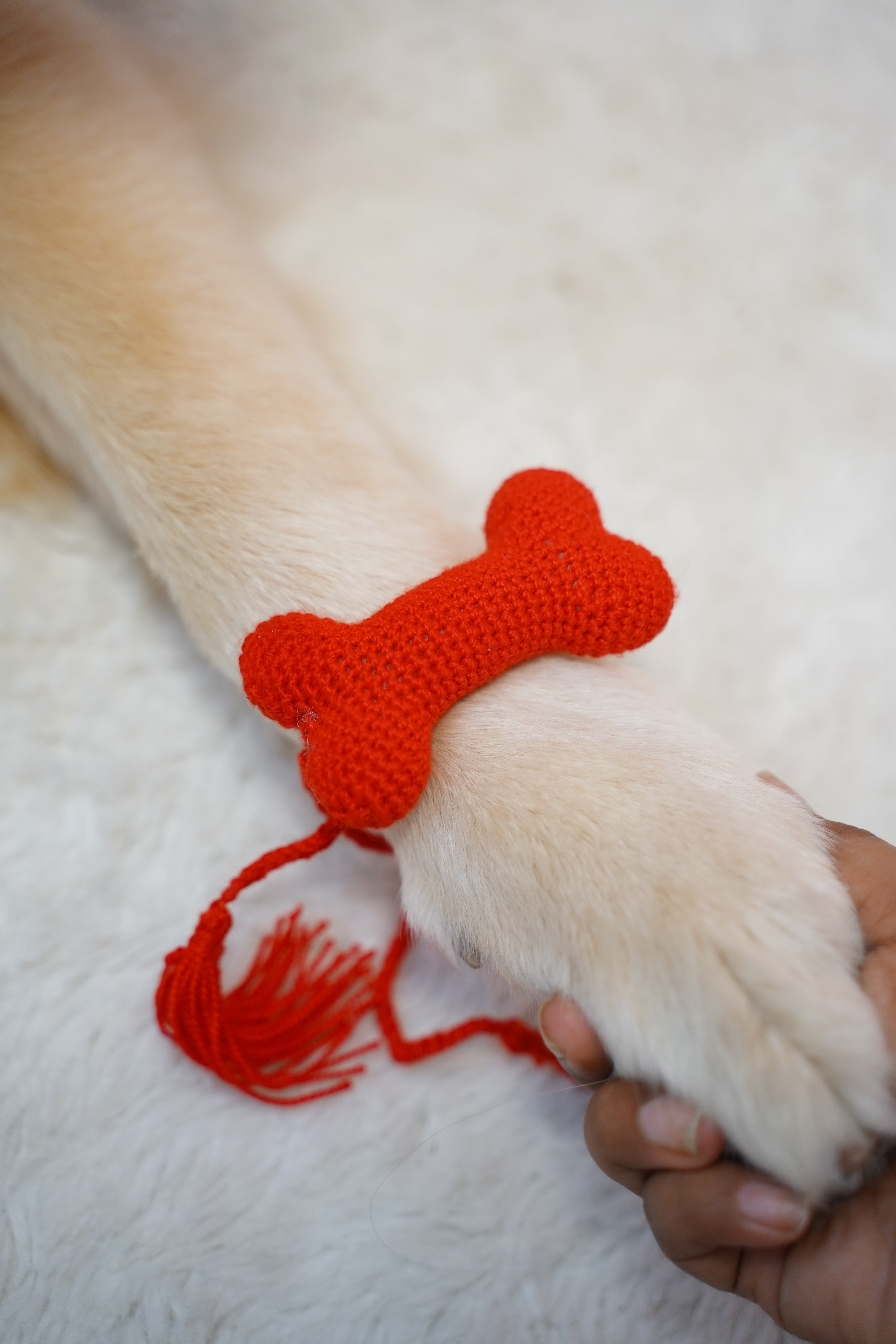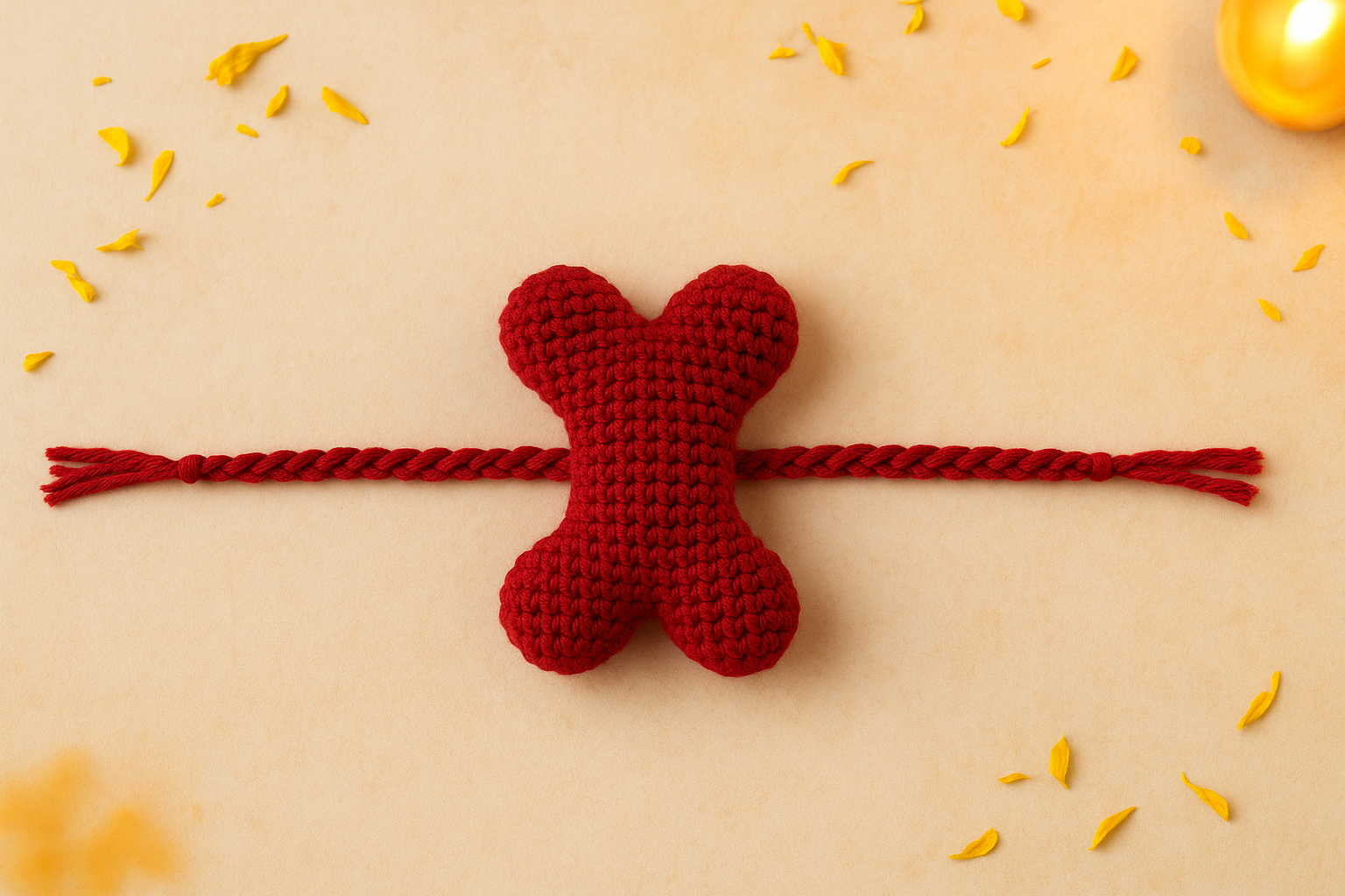 This Raksha Bandhan, let’s make your dog feel like the cherished family member they truly are. Our handmade red bone-shaped rakhi is more than just an accessory—it’s a symbol of the endless love and protection you share with your loyal companion. Lovingly crocheted with soft threads and adjustable ties, it slips gently onto their paw, creating a moment you’ll both treasure forever. At PawTaaka, we believe pets are siblings too, so tie this rakhi and celebrate the pawsome bond that lights up your life. Perfect for pet parents—add a personal touch to your festival with free delivery options.