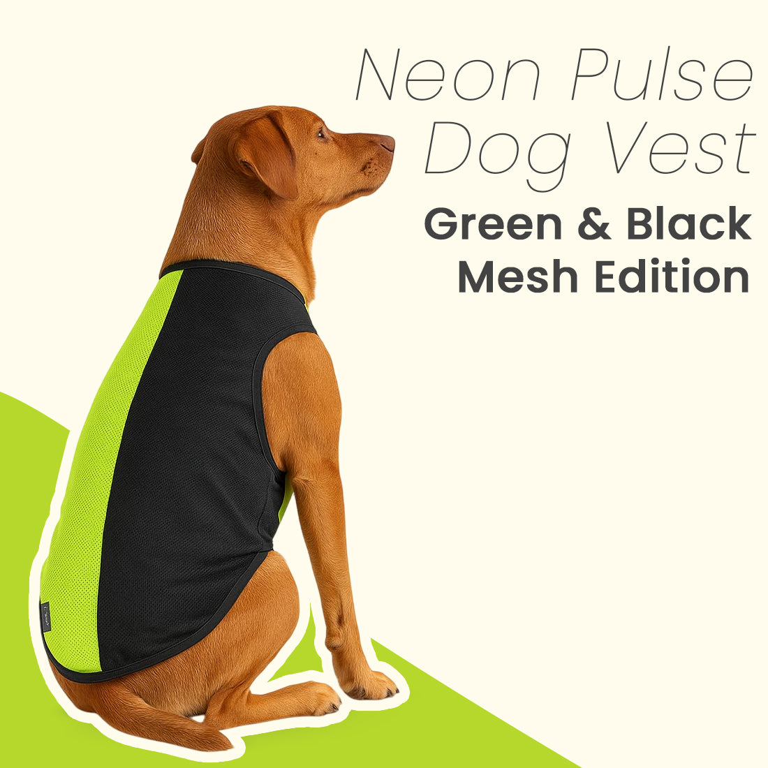 PawTaaka Neon Pulse Dog Vest – Green & Black Mesh Edition
