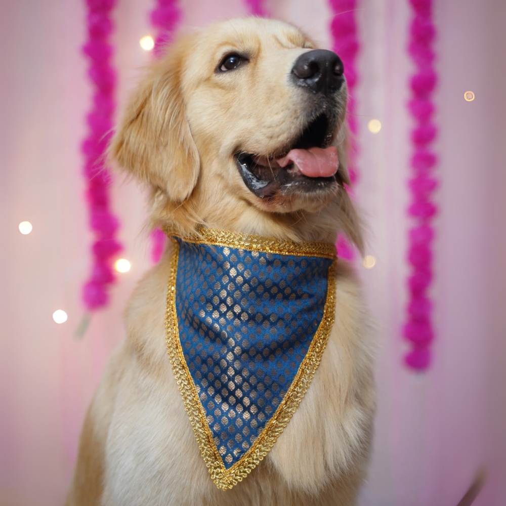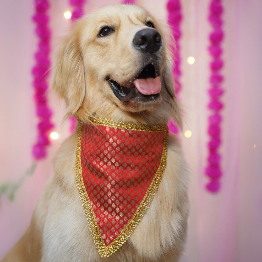 PawTaaka Festive Brocade Dog Bandana – Available in Red or Blue