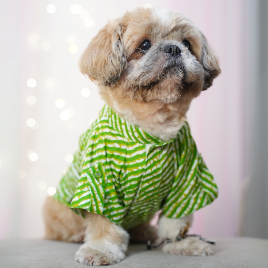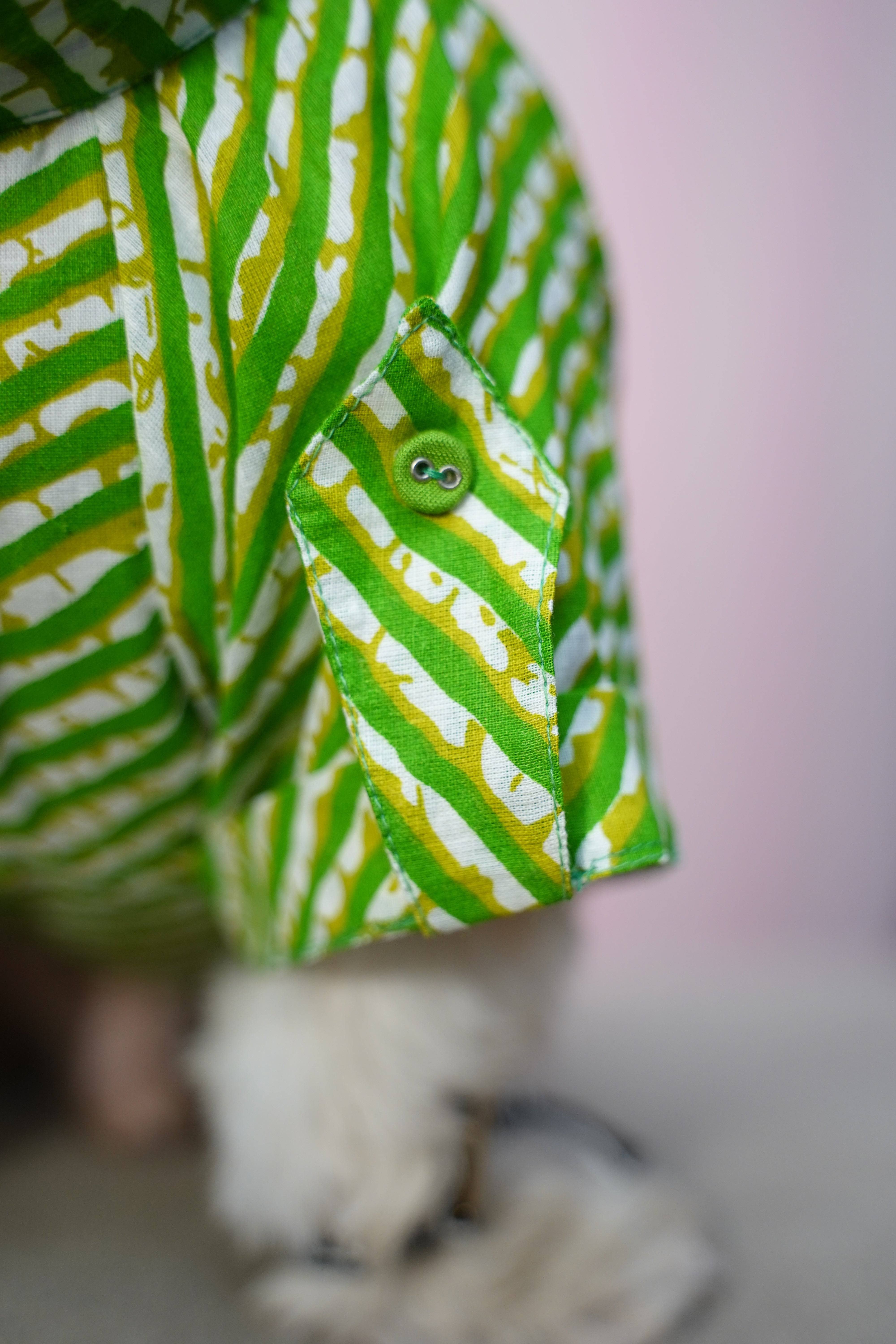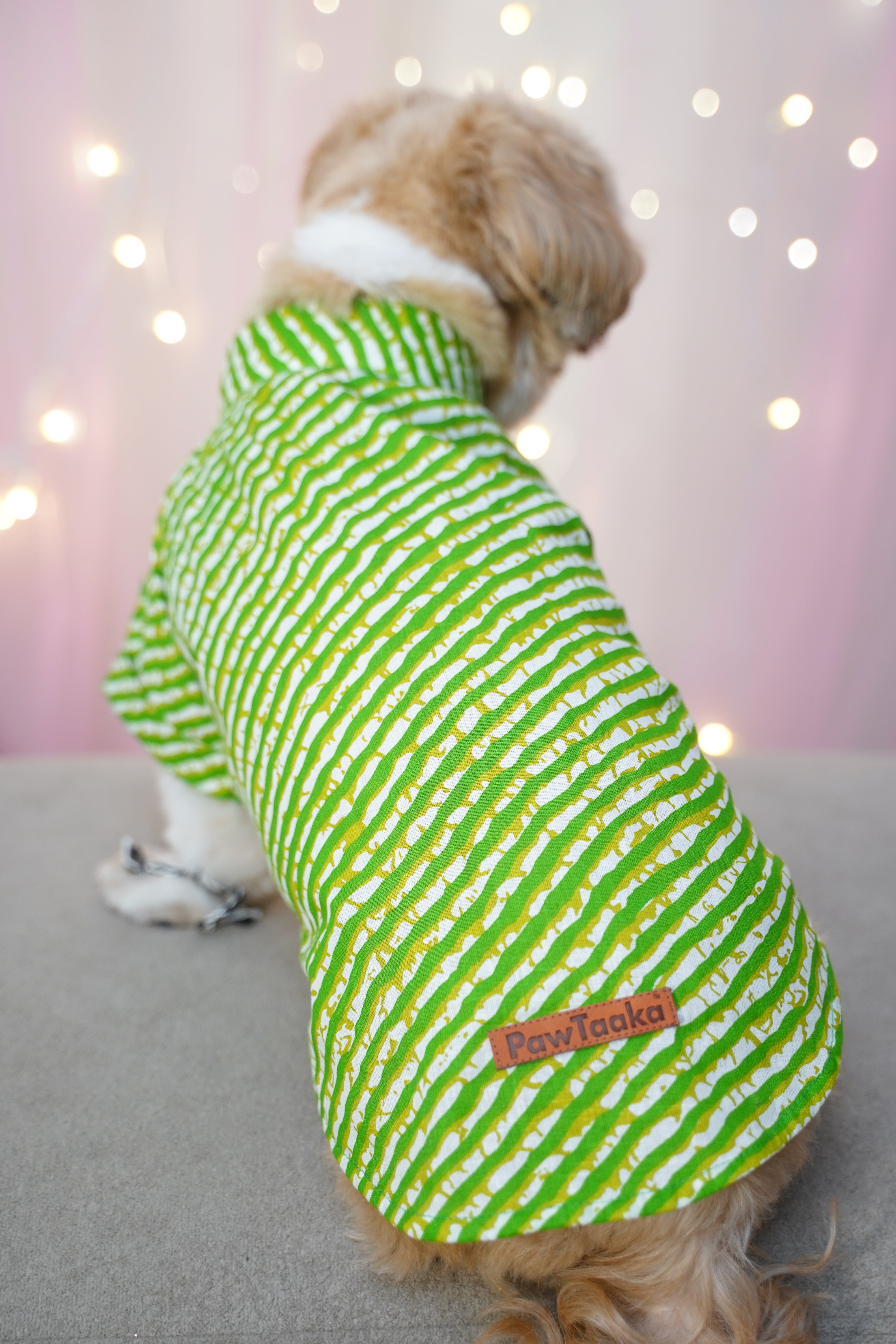 PawTaaka Leheriya Dog Kurta – Festive Green Stripes Edition