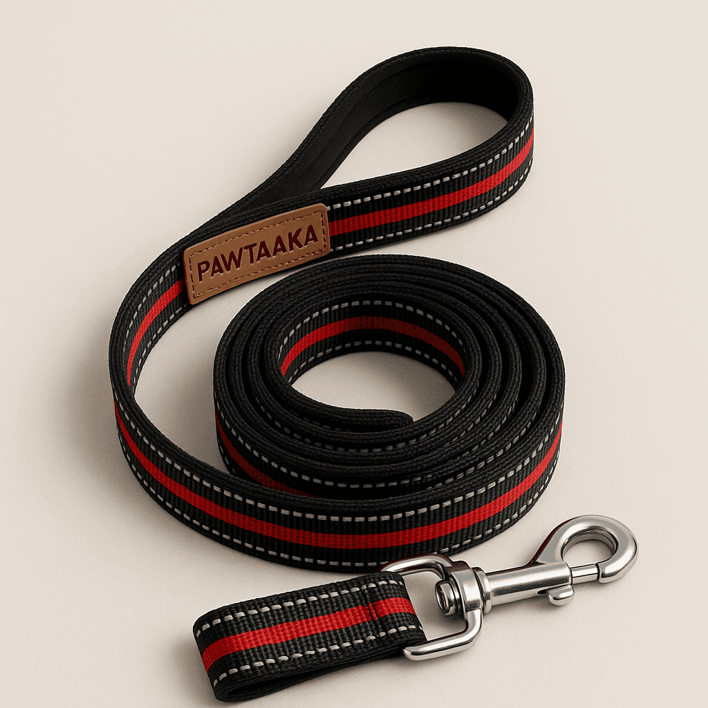 PawTaaka Midnight Stride Reflective Dog Leash – Black & Red Nylon Grip