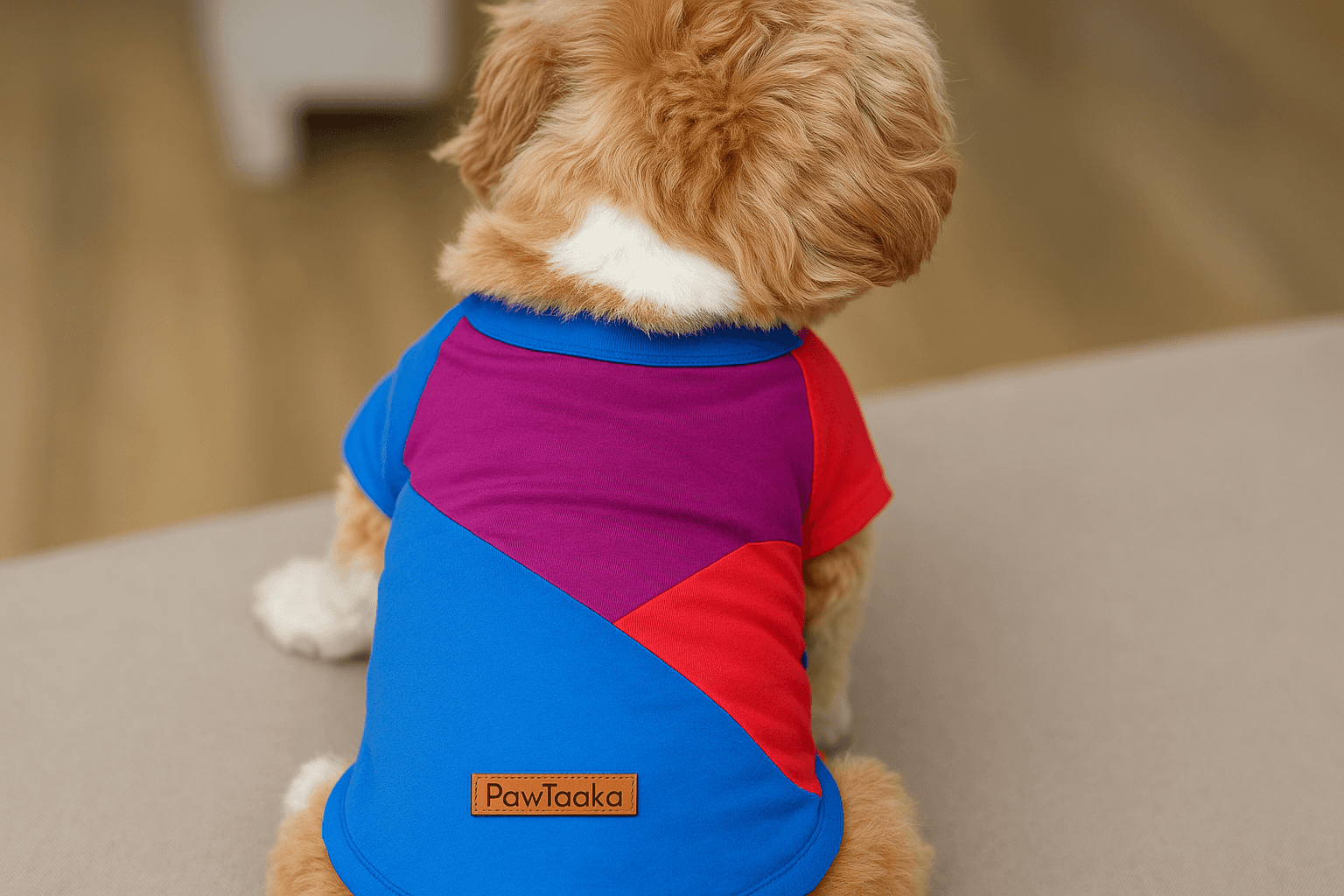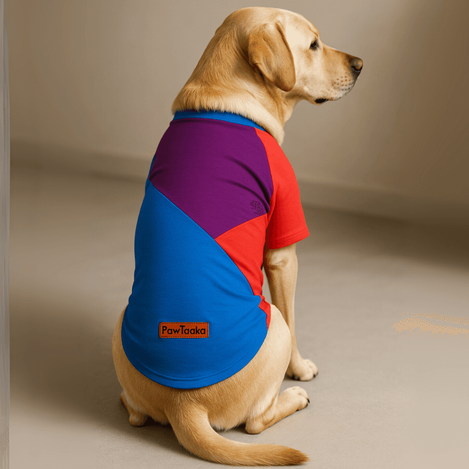 PawTaaka Pop Prism Dog T-Shirt – Red, Blue & Purple Colorblock Edition