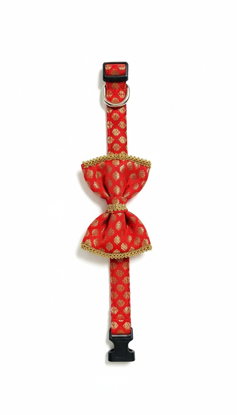 PawTaaka Red Festive Bow Collar for Dogs & Cats | Adjustable Ethnic Pet Accessory