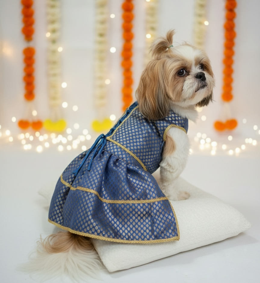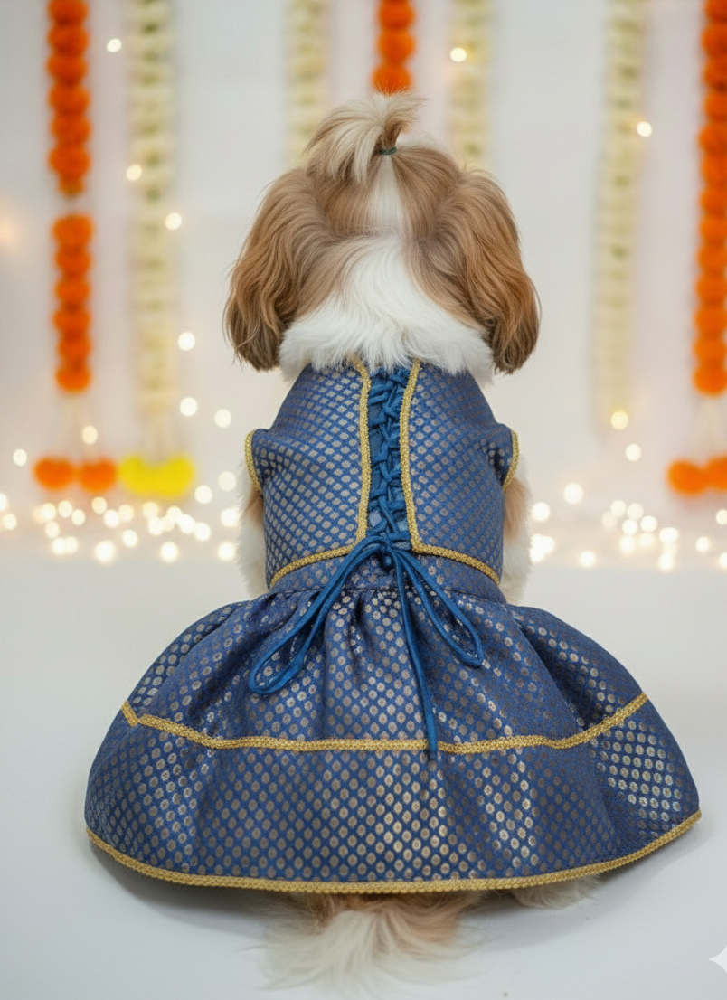 PawTaaka Royal Blue Brocade Pet Lehenga – Wedding & Festive Dress for Dogs