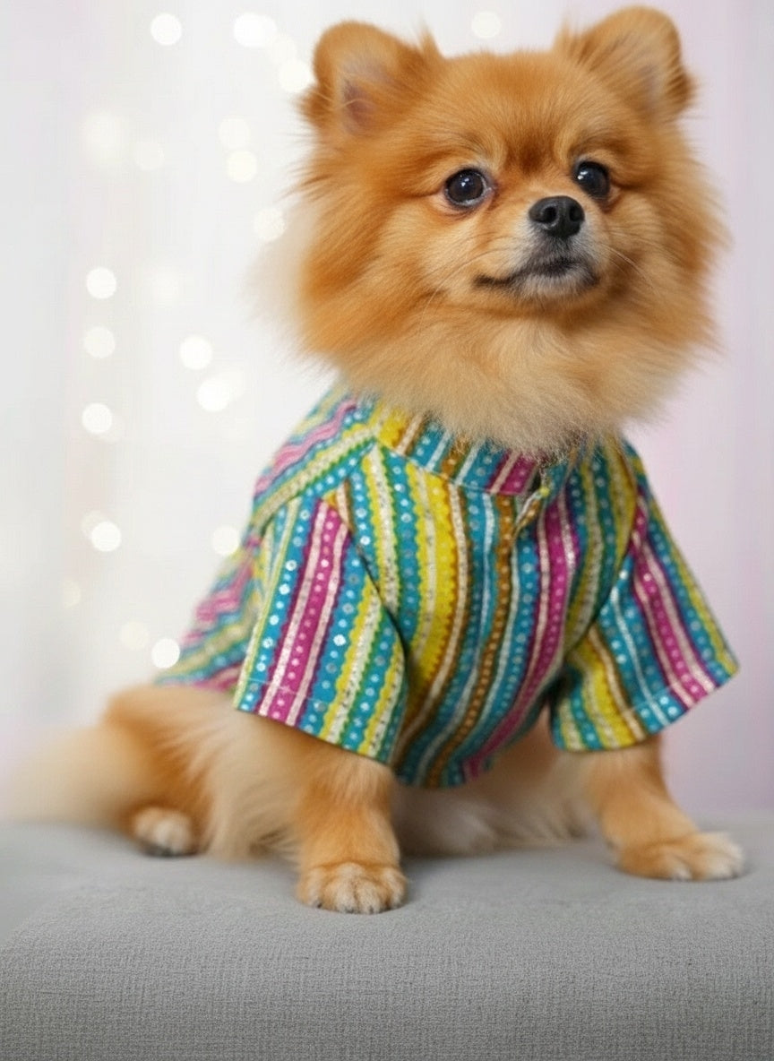 PawTaaka Festive Leheriya Dog Kurta – Multicolor Ethnic Wear for Dogs