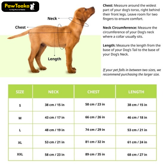 Every PawTaaka product comes with a detailed size chart to help you pick the perfect fit.