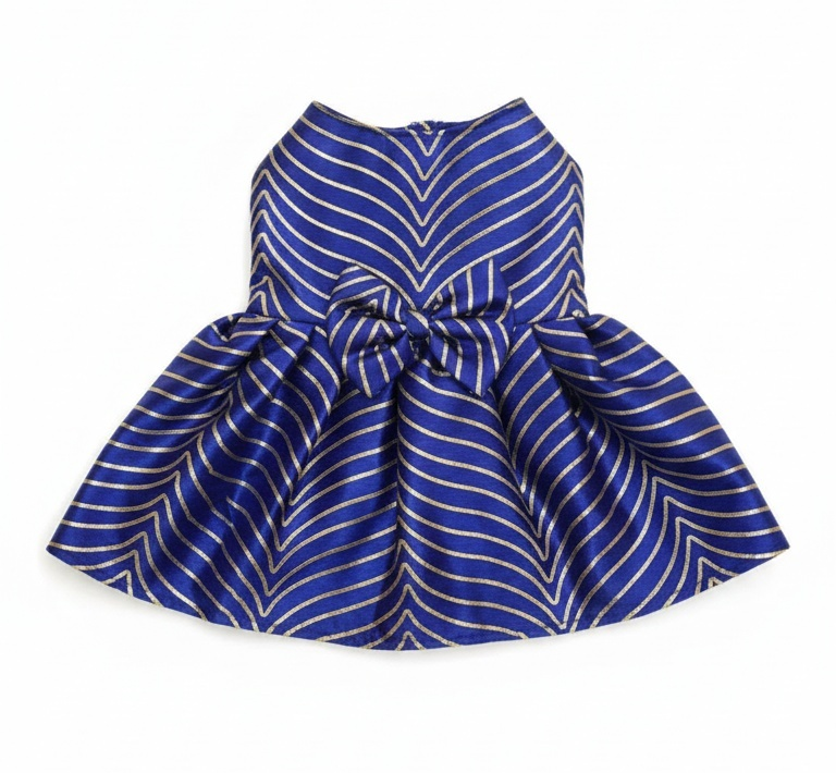 Royal Blue Golden Zigzag Dog Dress – Festive & Wedding Celebration Wear