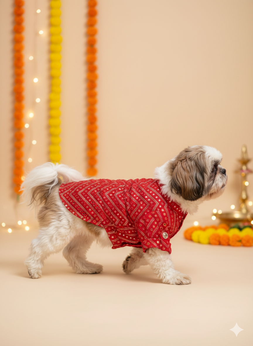 Royal Red Kurta for Dogs – Festive & Wedding Ethnic Wear